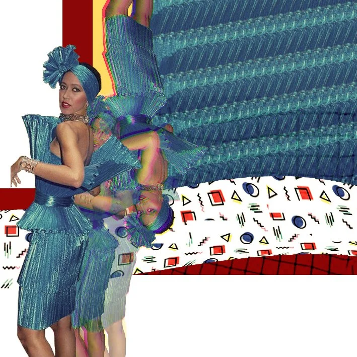 A still image of supermodel Pat Cleveland is transformed through the prevalence of repetition in the patterns of her dress in order to explore the illusion of movement.